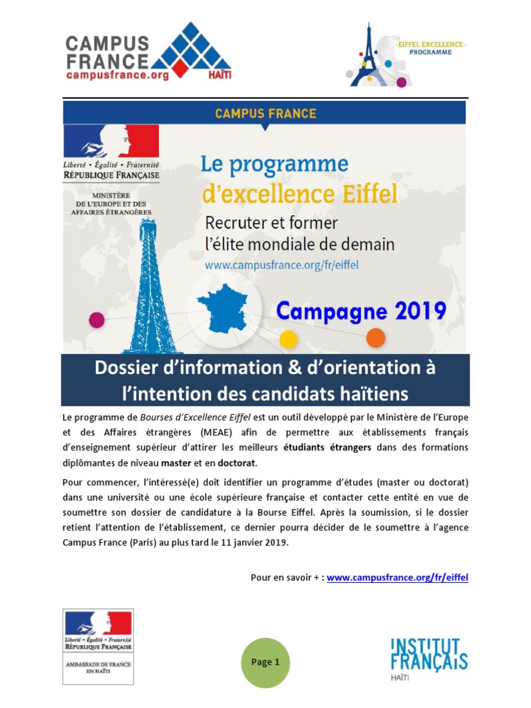 The Eiffel programme is a scholarship programme run by the French Foreign Ministry in order to help French HEI to attract the top international students to Masters degrees and PhD programmes.